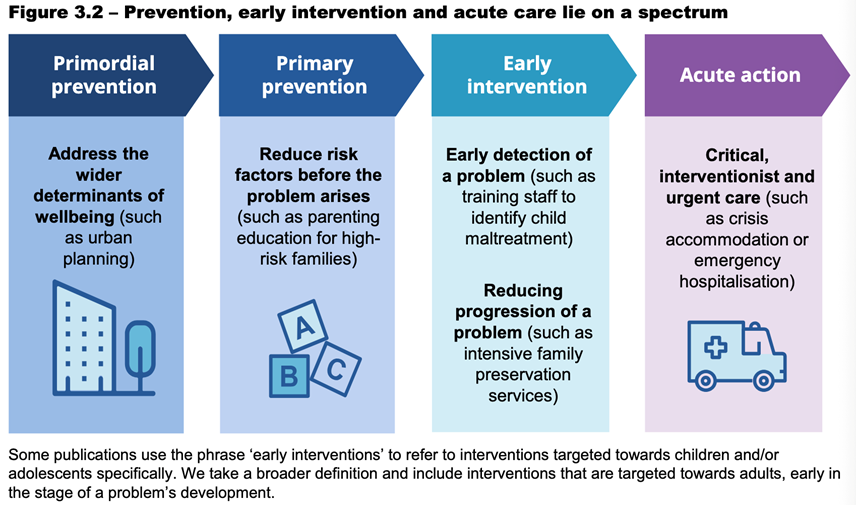 [19] Productivity Commission, p. 64, Section 3: A national framework to support government investment in prevention and early intervention, Delivering Quality Care more efficiently: Inquiry report, Dec 2025
